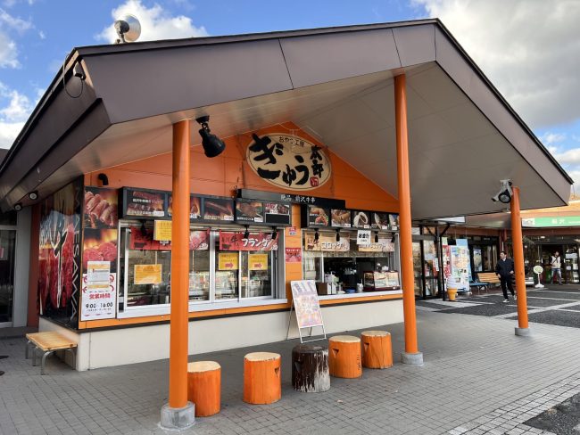 次に寄ったのが前沢SA。先ほどラーメンを食べたばかりでしたので、おやつに前沢牛ねぎま串焼きを一本。