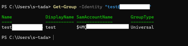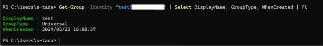 特に Format-List を使用せずにコマンドを実行すると、以下のようにかなり限定的なプロパティが出力されます。